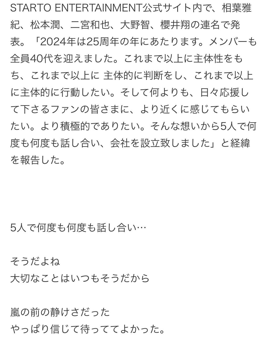 嵐メンバー5人で「株式会社嵐」を設立!!!