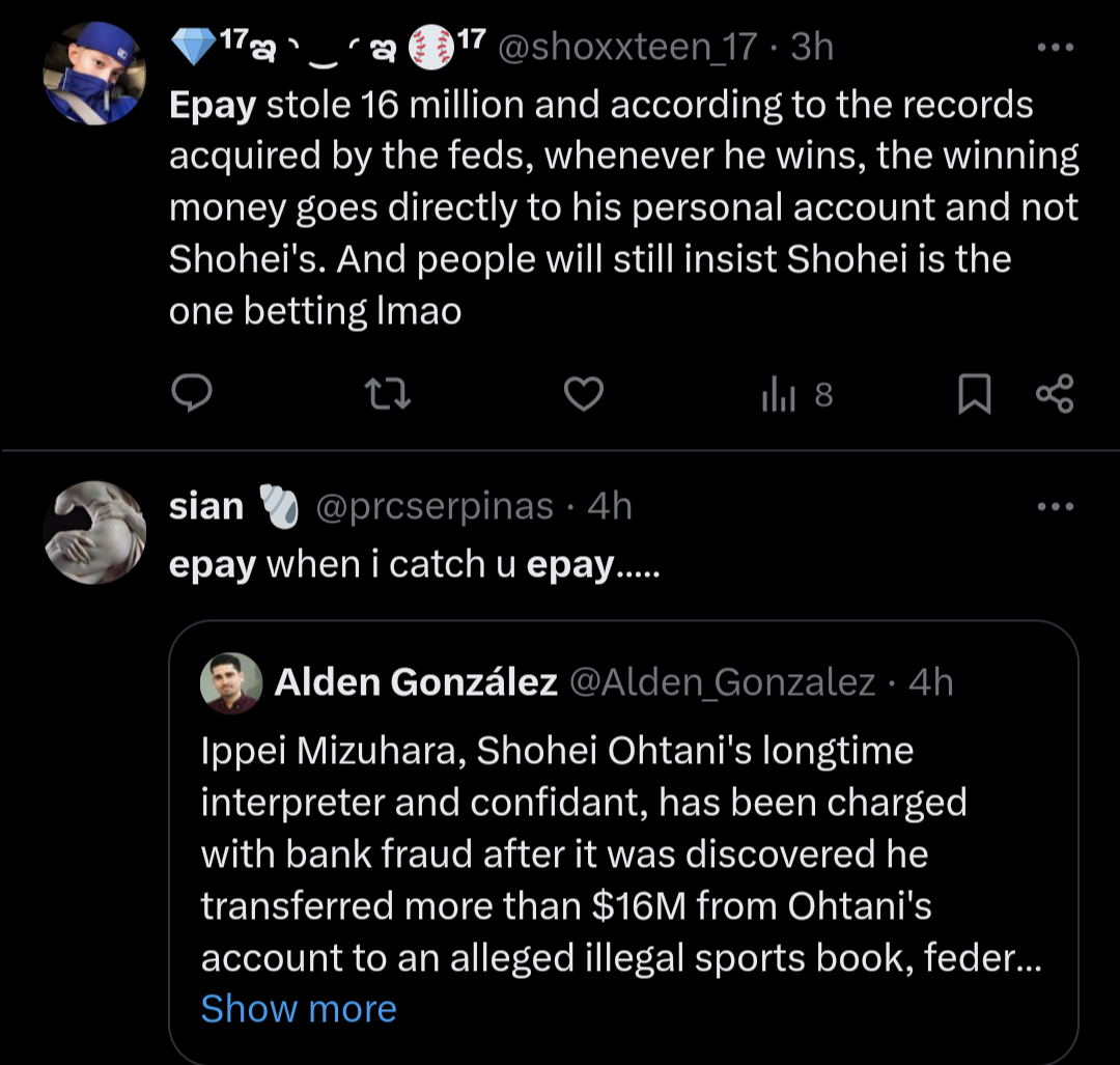 水原一平さん、アメリカ人から『ePay』というニックネームをつけられる
