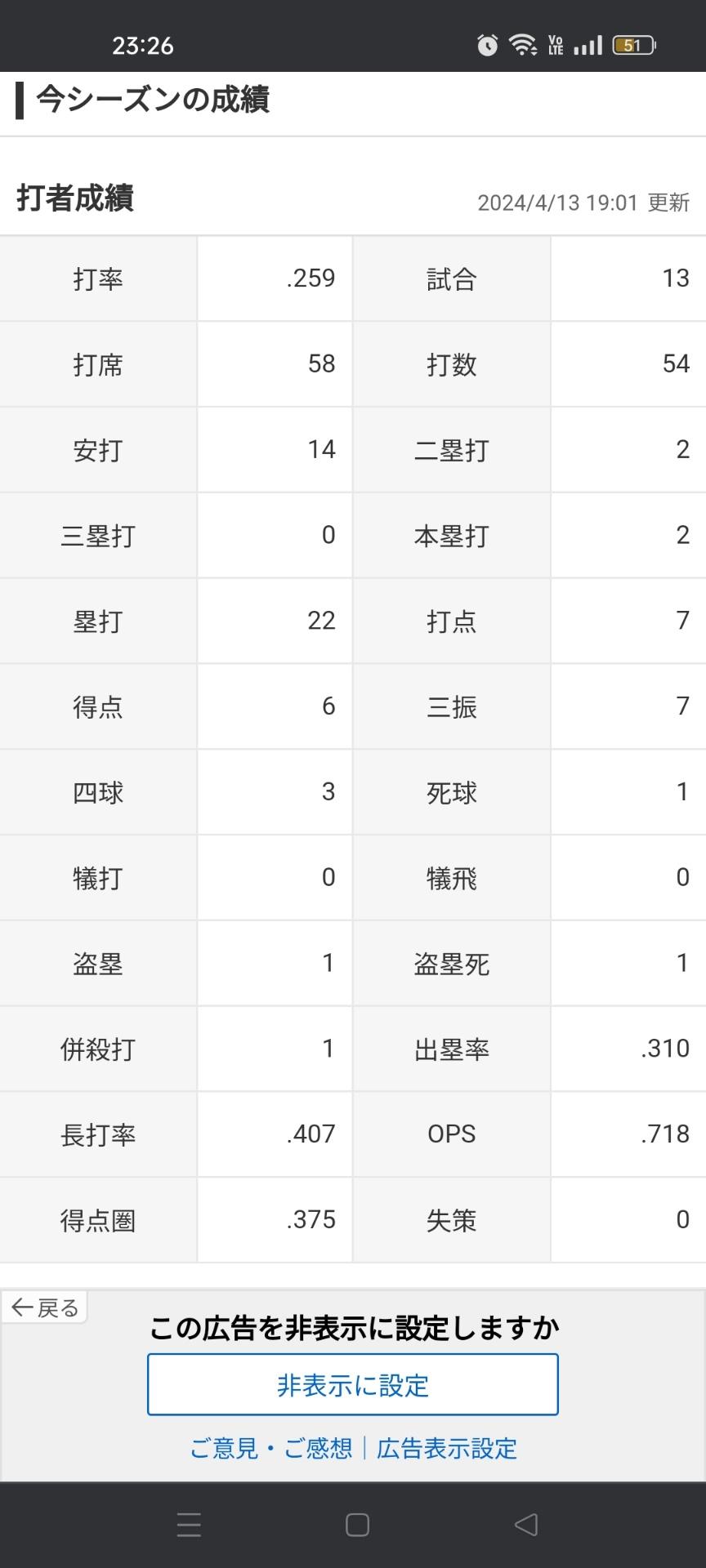度会隆輝「打率.259(54-14)2本 7打点 OPS.718 得点圏打率.375」←こいつについての率直な感想wwww