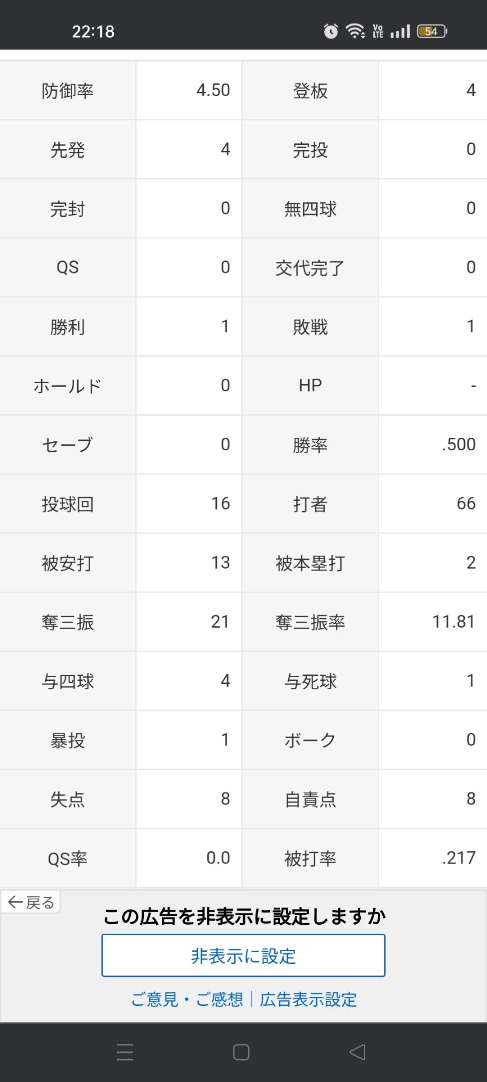 山本由伸「1勝1敗 防御率4.50 投球回16 WHIP1.06 奪三振率11.81 K/BB5.25」←こいつについての感想www