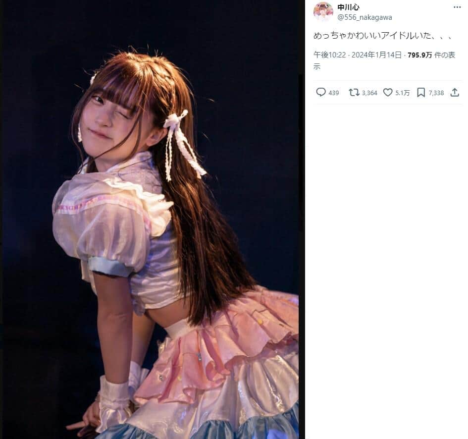 17日、あるXユーザーが中川さんのライブ中の写真とともに、中川さんが可愛いという趣旨の投稿をした。