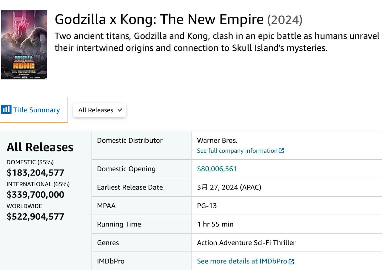 【悲報】ゴジラ-1.0「世界を席巻しました」→180億 ゴジラコング2「ほーん」→800億