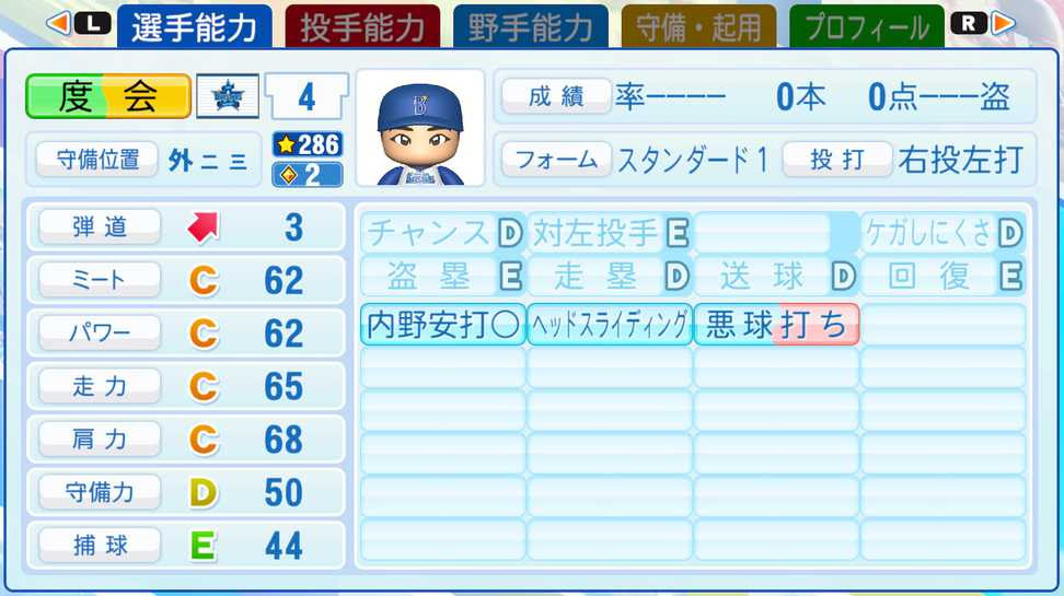 度会のパワプロ能力wwwwwwwwww