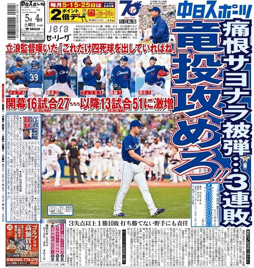 立浪「だから今年は違うと言ったじゃないですか」後 4勝11敗