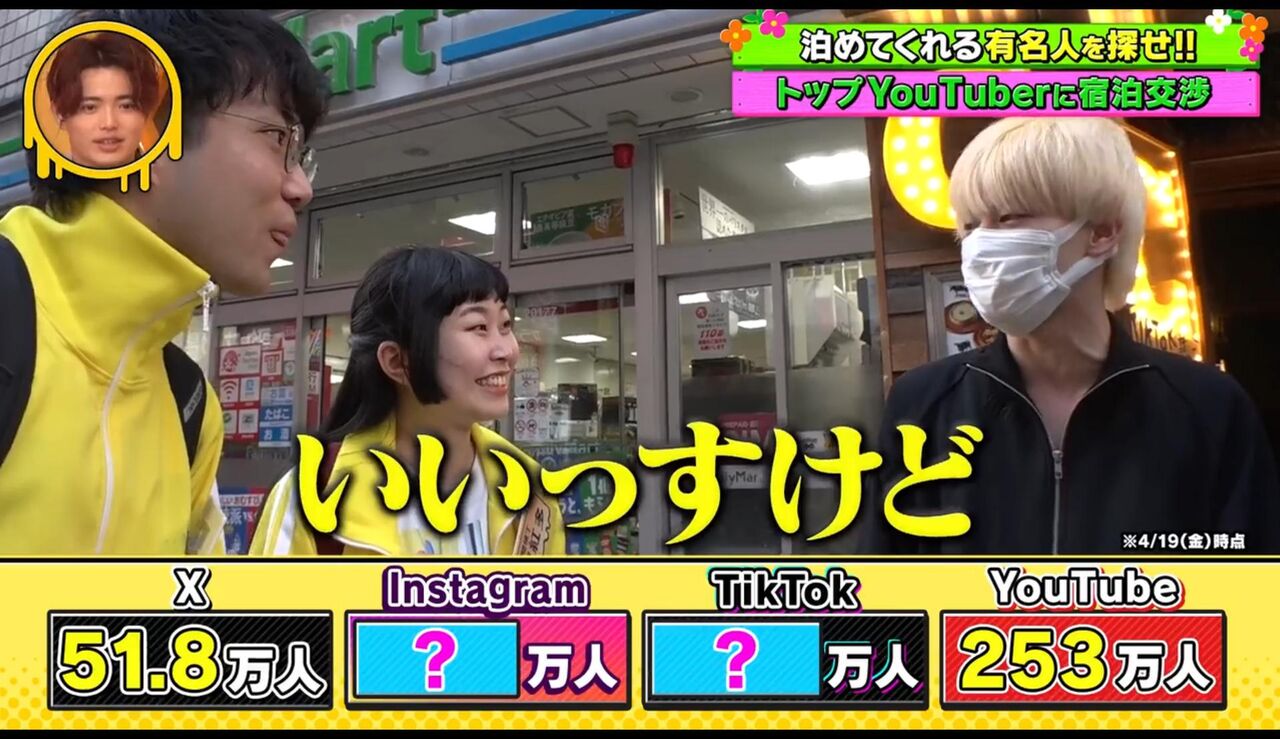 フジテレビ「人気Youtuberに宿泊交渉してみた!」←結果wwwwww
