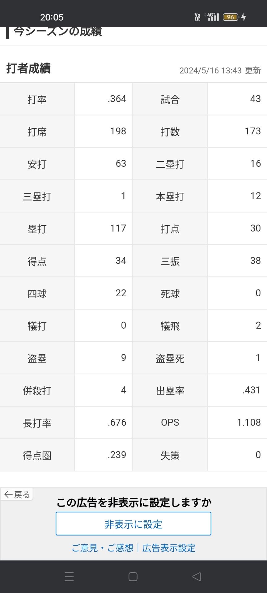大谷翔平「打率.364(173-63)12本 30打点 OPS1.108 盗塁数10(100%)」←これについての率直な感想wwwwwww