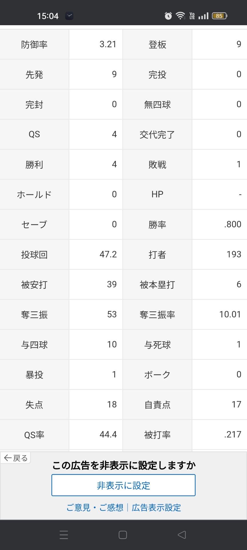 山本由伸「4勝1敗 防御率3.21 投球回47.2 奪三振率10.01 whip1.03」←これについての率直な感想www