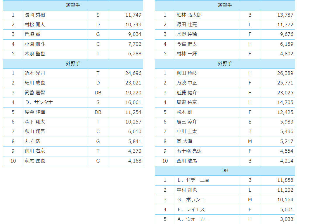 マイナビオールスターゲーム2024 ファン投票 中間発表