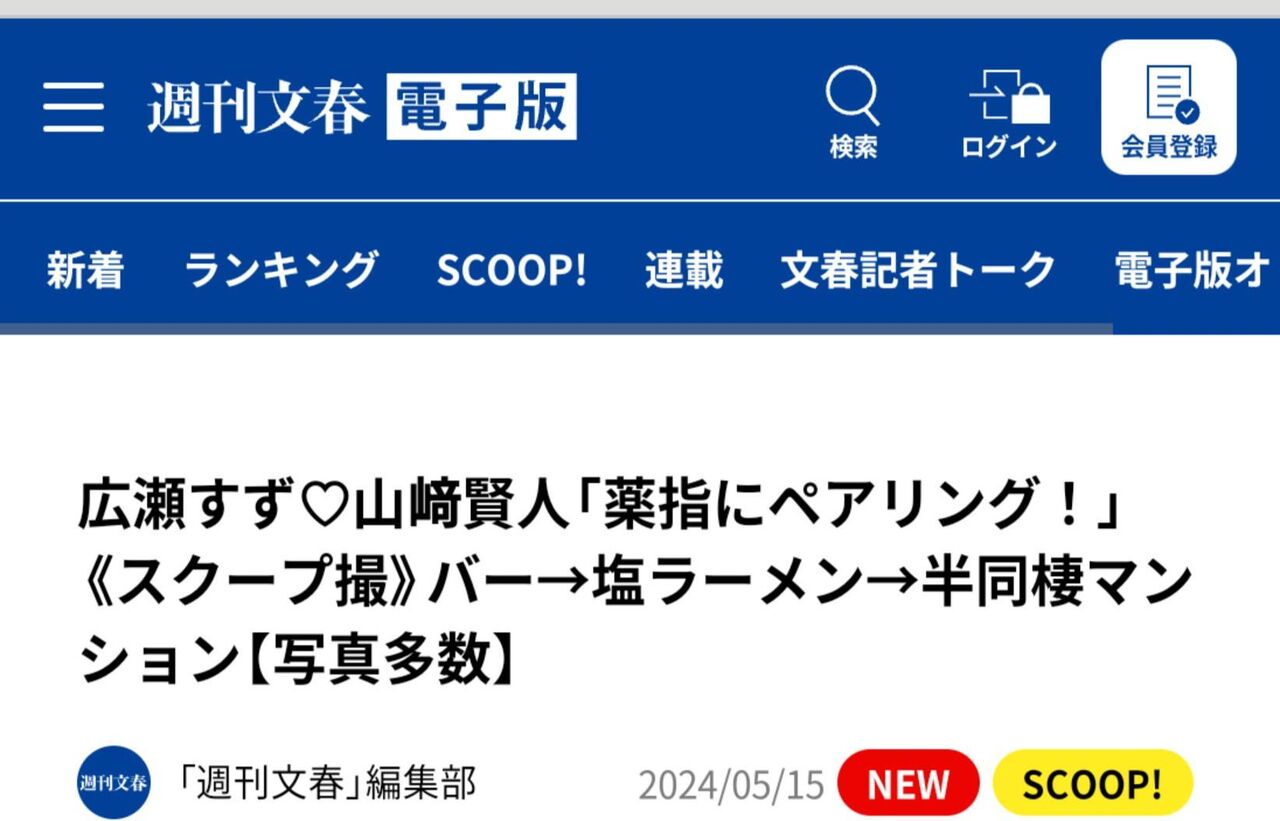 広瀬すずと山崎賢人が熱愛、塩ラーメンデートを繰り返す