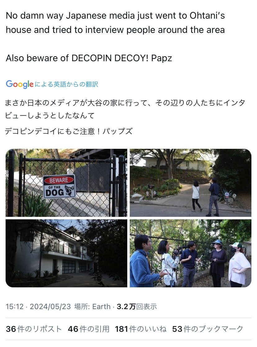 日本メディアさん、早速大谷の家に行ってインタビュー敢行wwwwwwwwwwwwww