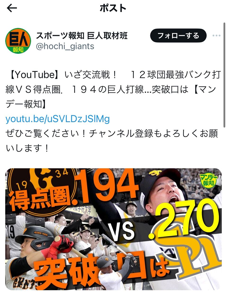 【悲報】スポーツ報知、12球団最低の得点圏打率をネタにしてしまう