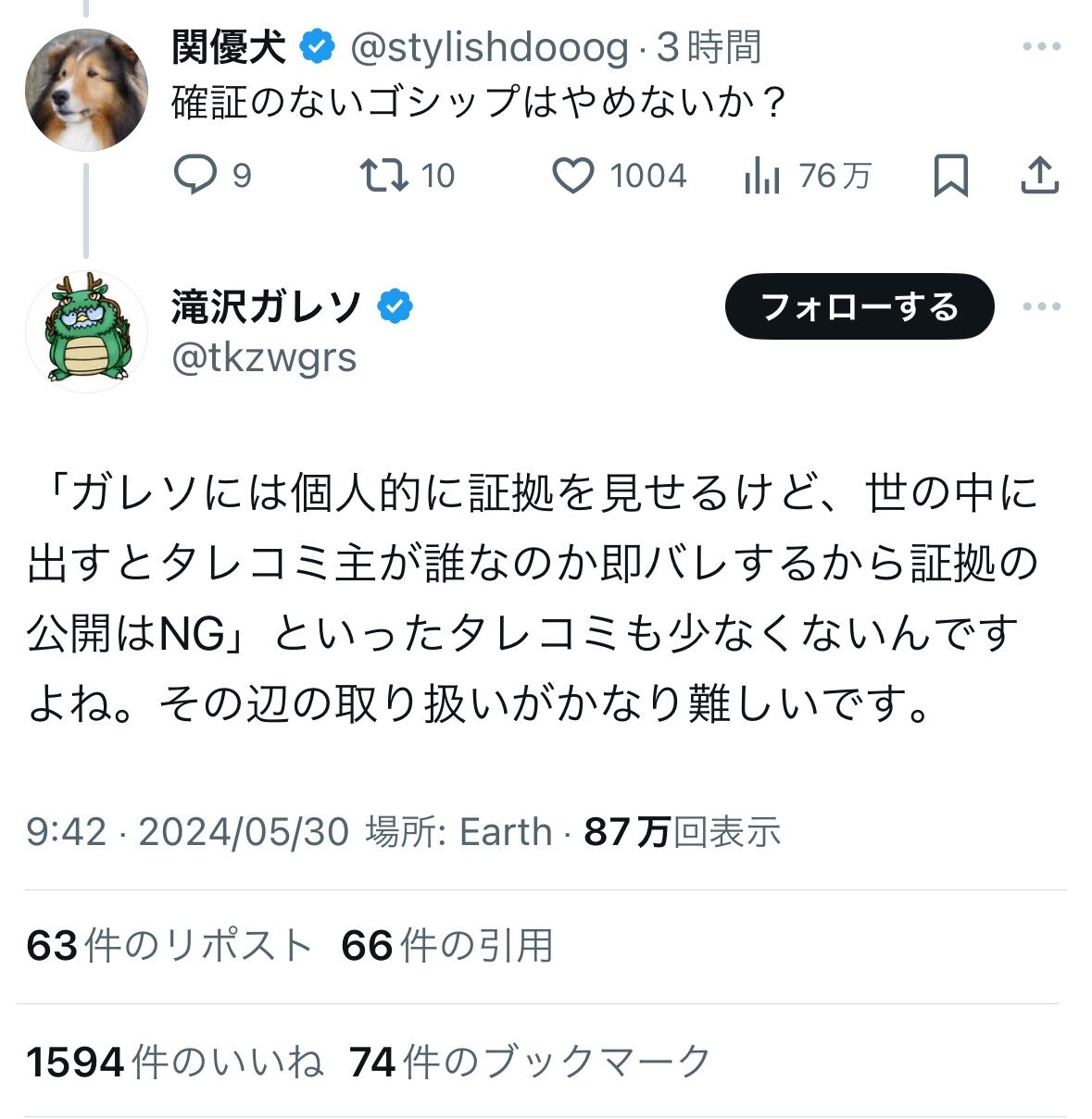 滝沢ガレソ「証拠はあるけど出すとタレコミ主が即バレするから証拠出すのはNG」