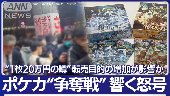 高値で取引される「レアカード」を入手すべく、転売ヤーがポケモンカードの買い占めをおこなう事態が増え、店頭からは品切れが続出。「中学生以下にのみ販売」や「おひとり様〇パックまで」と制限がかけられるほどに。また、人気YouTuberがポケモンカードを動画で取り上げたことも、若い視聴者層からの人気を集めるきっかけとなった。