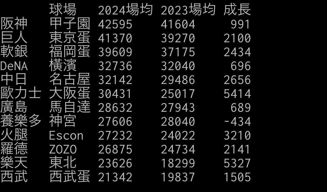 2024NPB平均観客動員数、去年の同時期より11球団が増加w