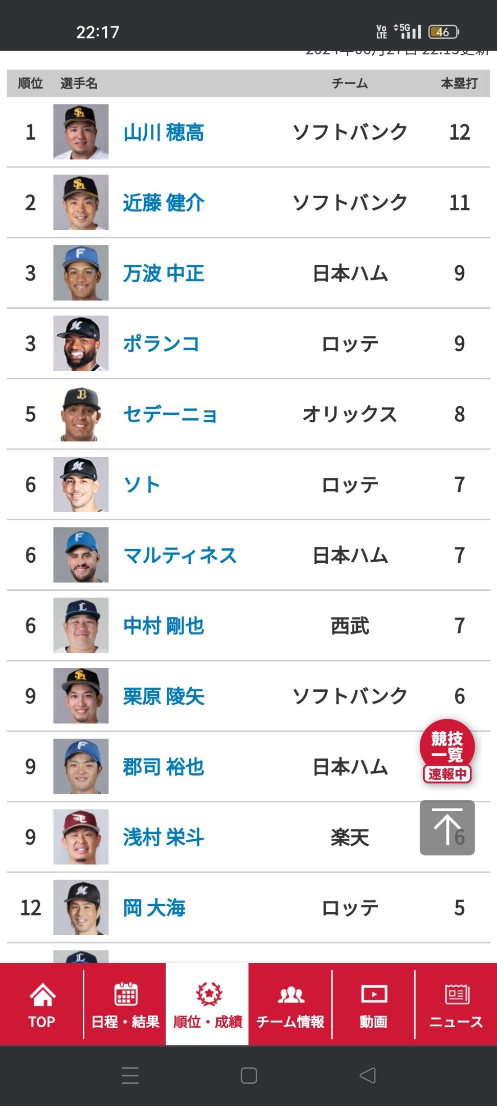 セデーニョがHR王なりそうやな
