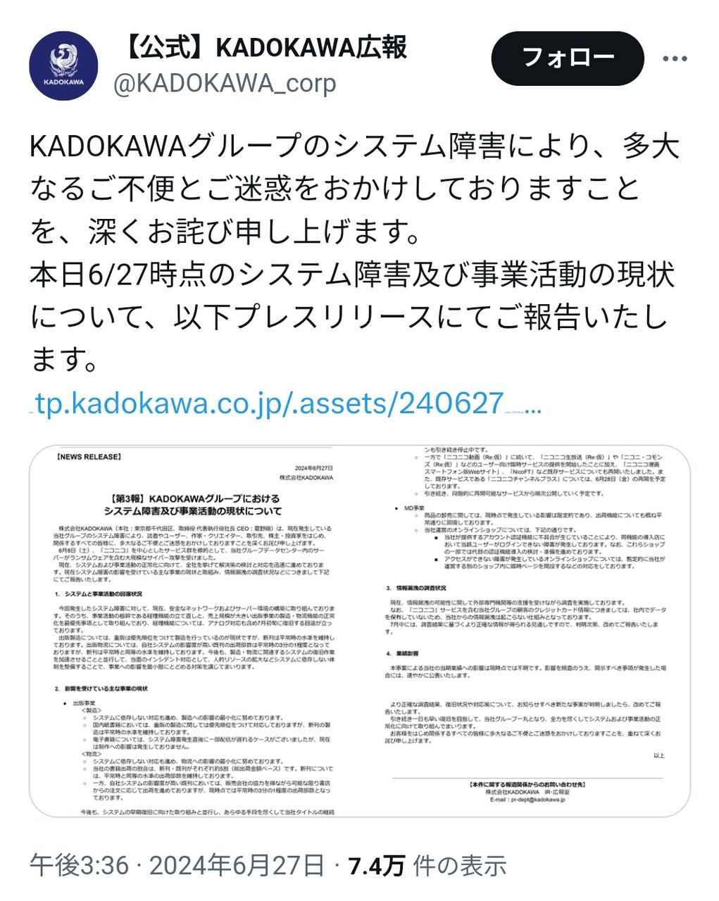 ニコニコ「繰り返しますがクレジットカード情報の流出は確認されてません。」