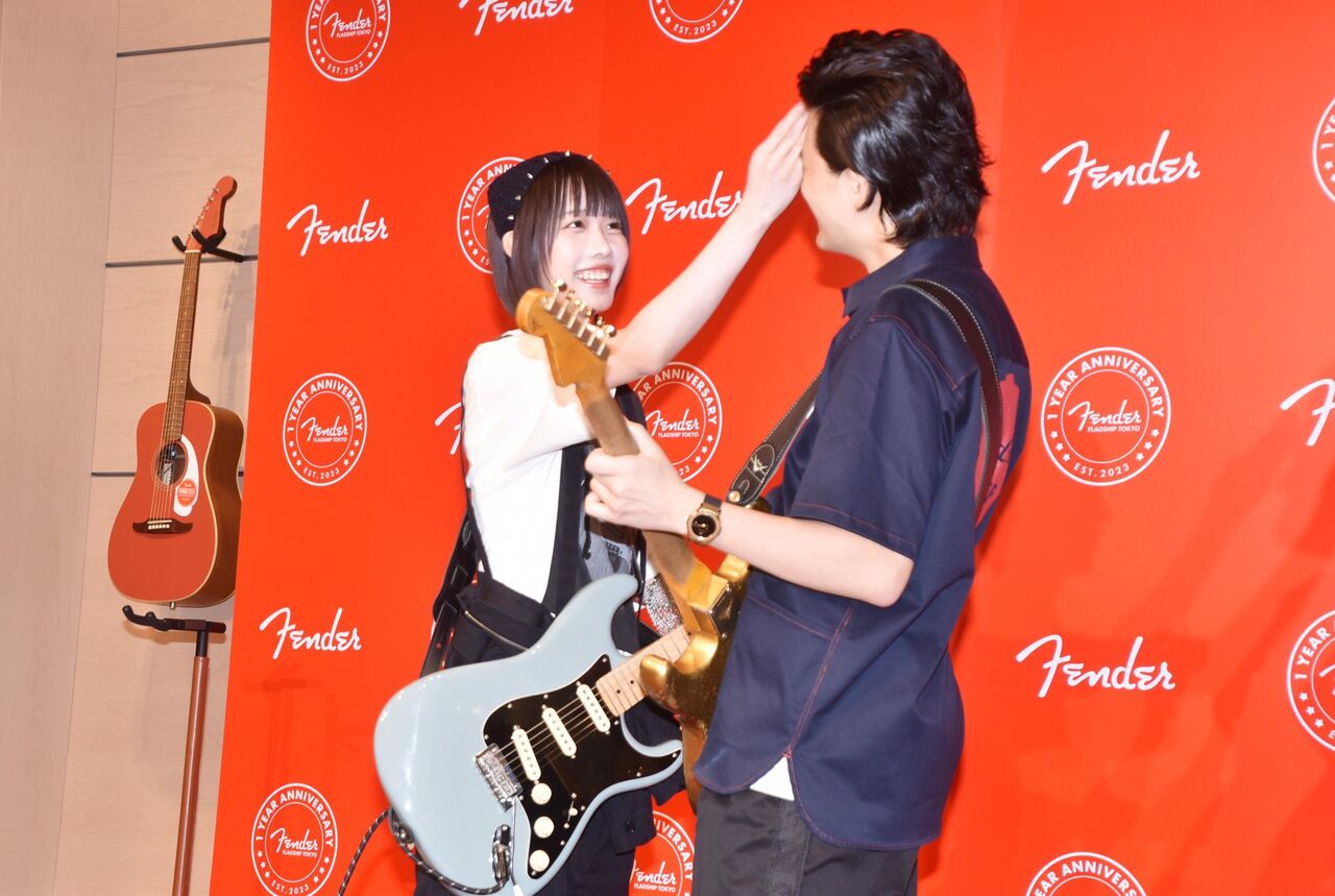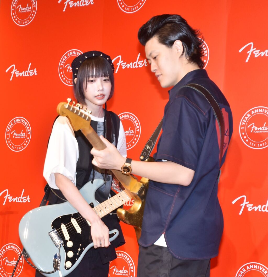 お笑いコンビ・霜降り明星の粗品、タレント・アーティストのあのが27日、東京・原宿のFender Flagship Tokyoの『First Anniversary Celebration Week』の1日店長就任式に登場した。