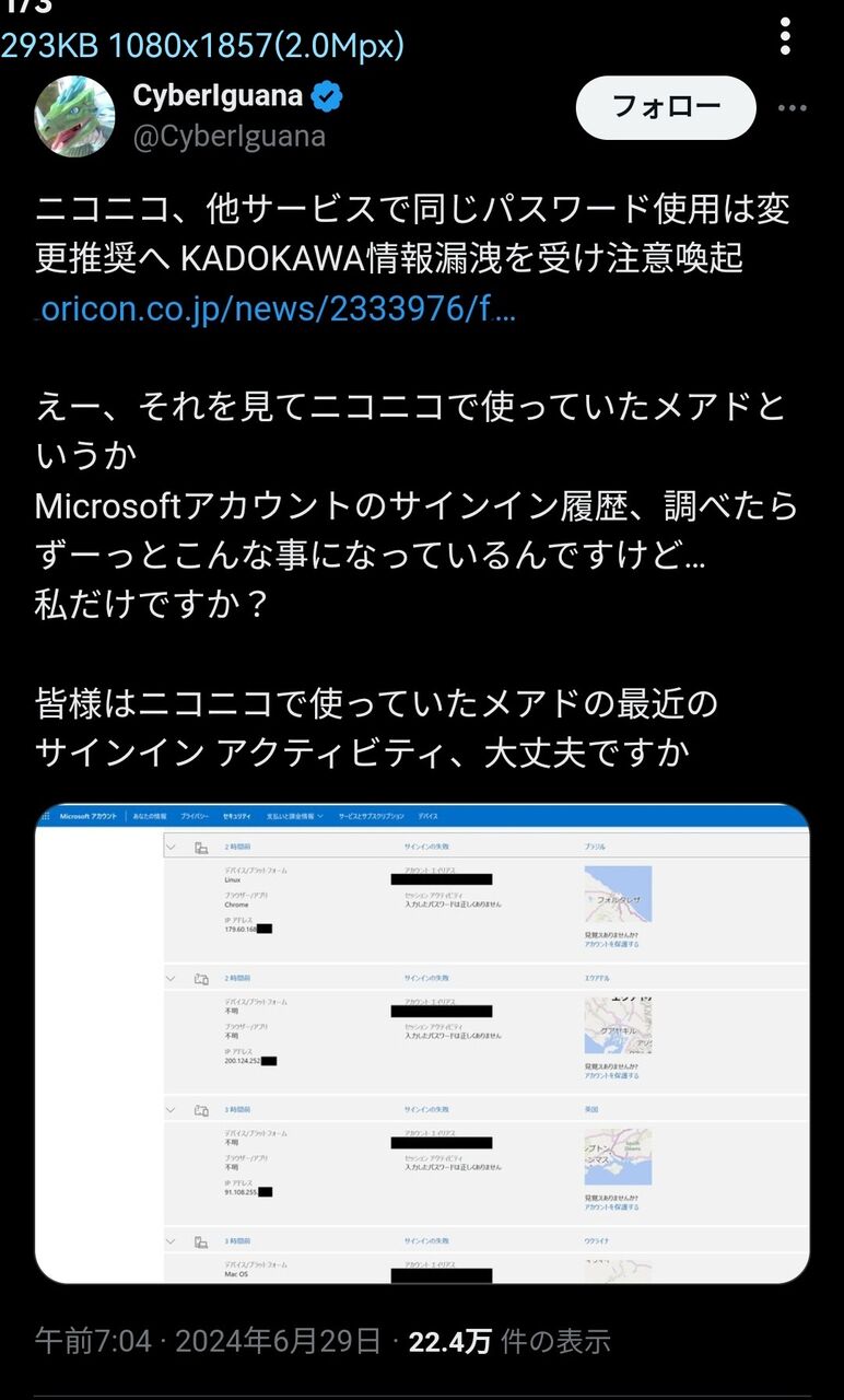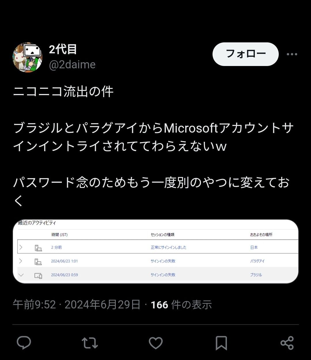 【悲報】ニコニコアカウント所持者、Microsoftアカウントに不審なアクセスが頻発