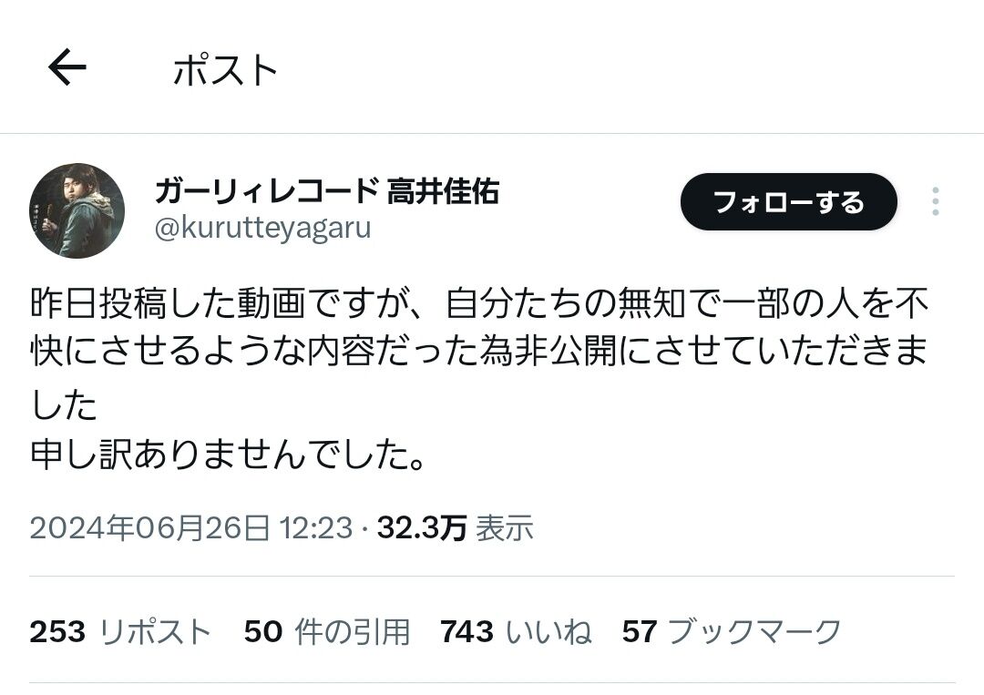 人気芸人、不適切なモノマネ動画を謝罪して削除