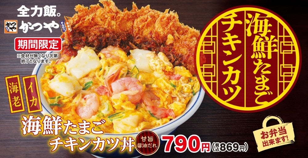 「海鮮たまごチキンカツ丼」は、丼だけでなく定食として、さらに丼はお弁当としてテイクアウトでもご利用いただけます。