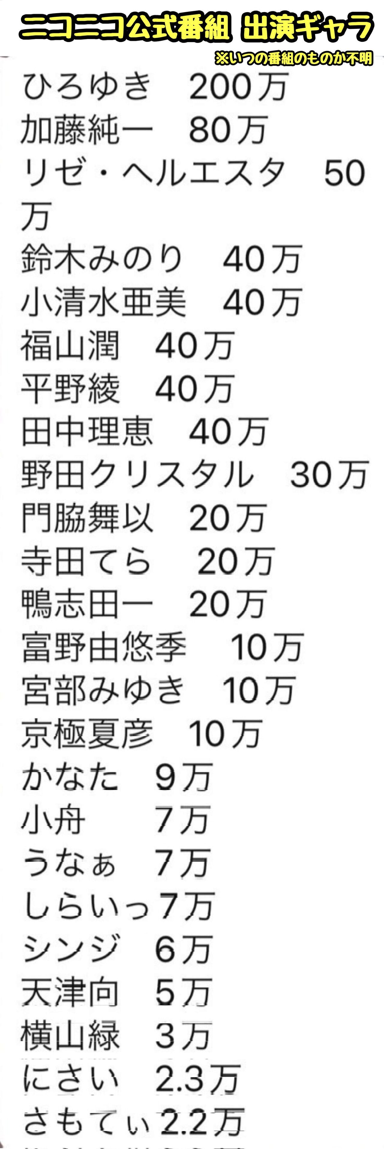 【画像】ニコニコの出演ギャラが流出、Vtuberは1本50万円