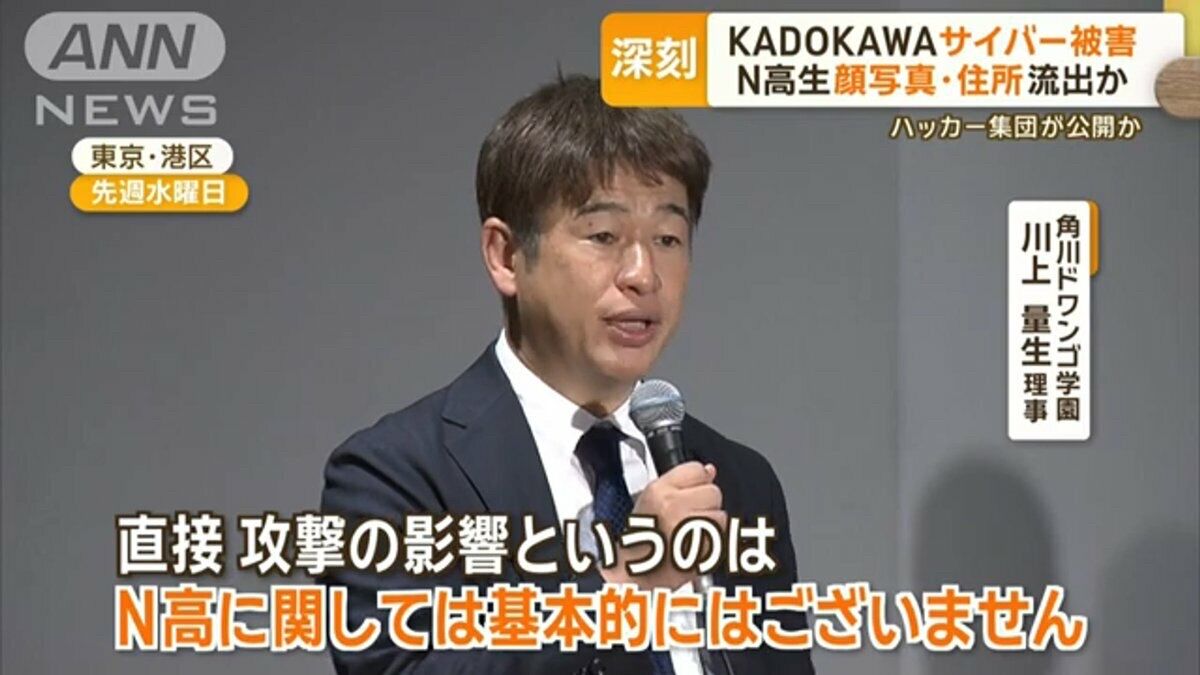 川上量生理事(55)「ランサムウェアの攻撃の影響というのはN高に関してはございません」