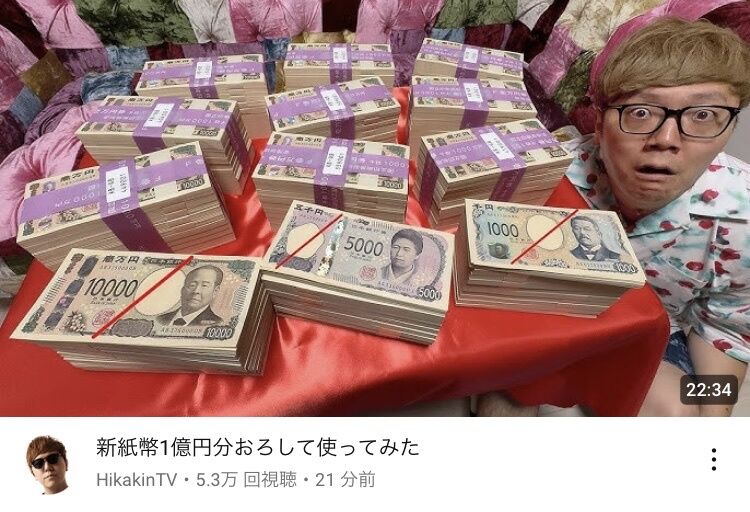 【大悲報】あの大人気YouTuber、新札を独占し炎上wwwww