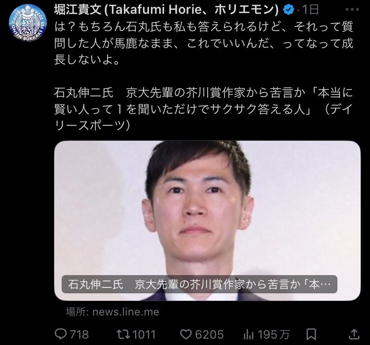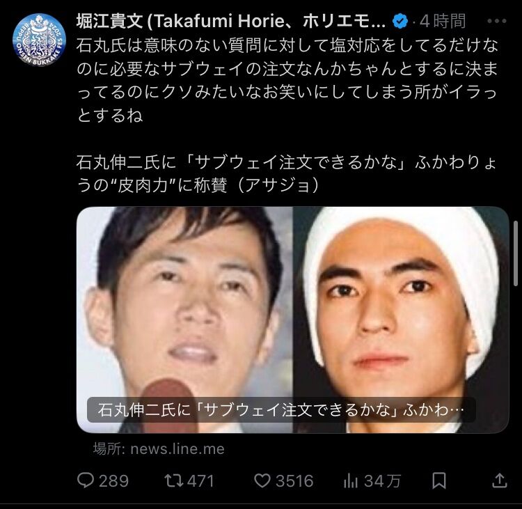 【悲報】堀江貴文さん51歳、突如として石丸サブウェイ構文にキレ散らかしてしまう