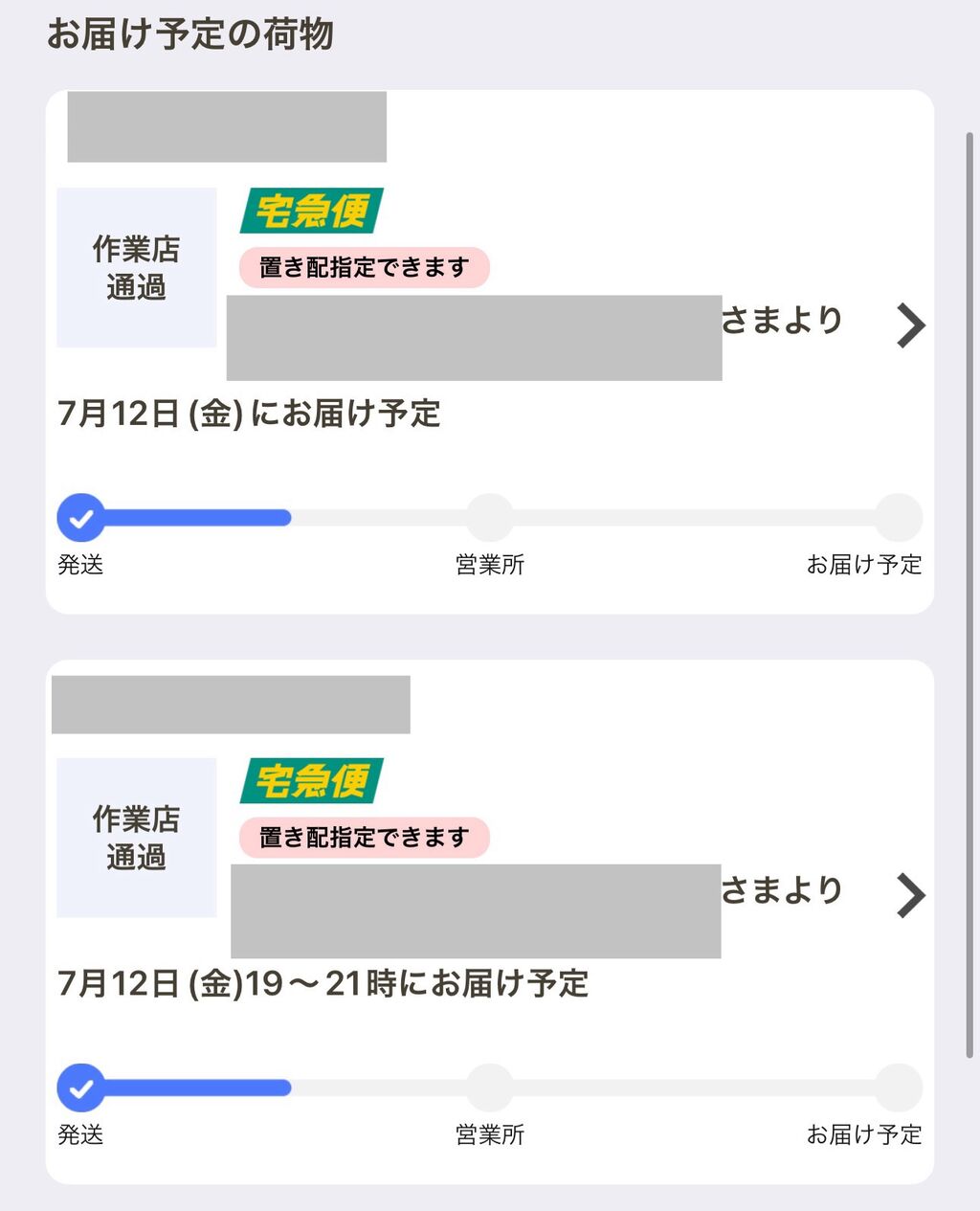 ワイの所は置き配指定してないのに勝手に車庫開けて置いていくし