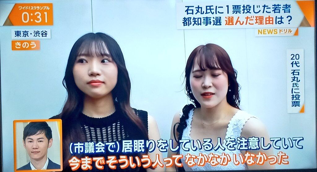 若者「石丸さんは議会で寝てる人を注意していた。そこが投票の一番の決め手でした」