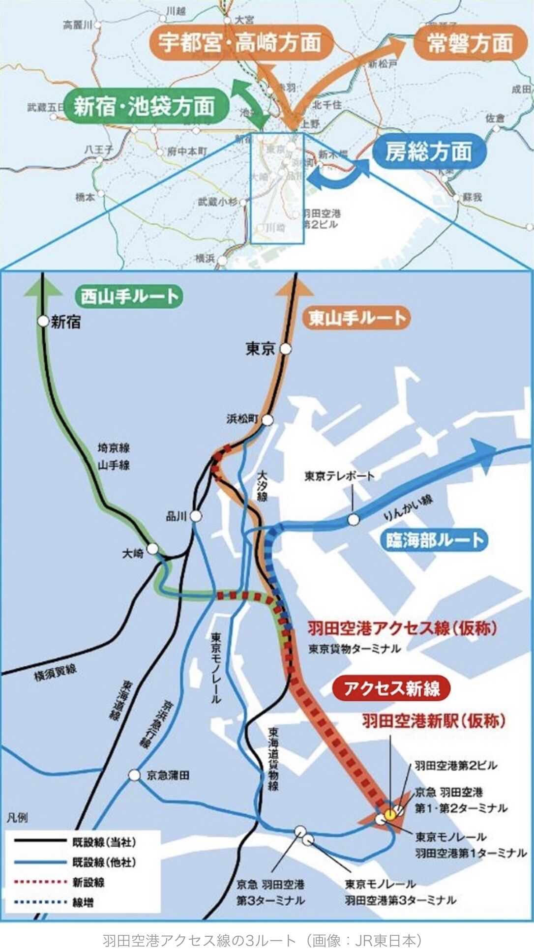 【朗報】JR東日本、羽田空港への新設線3ルート発表wwwwwwwww