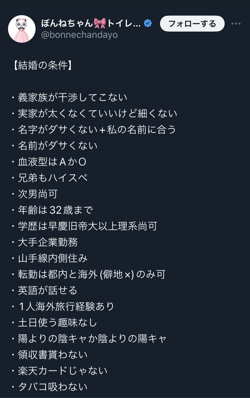 【悲報】婚活女子「これが私と結婚する条件な」あまりに厳しすぎると話題に