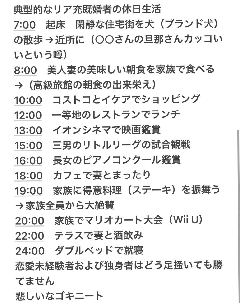 【朗報】典型的なリア充既婚者の休日の過ごし方、ヤバい!!w
