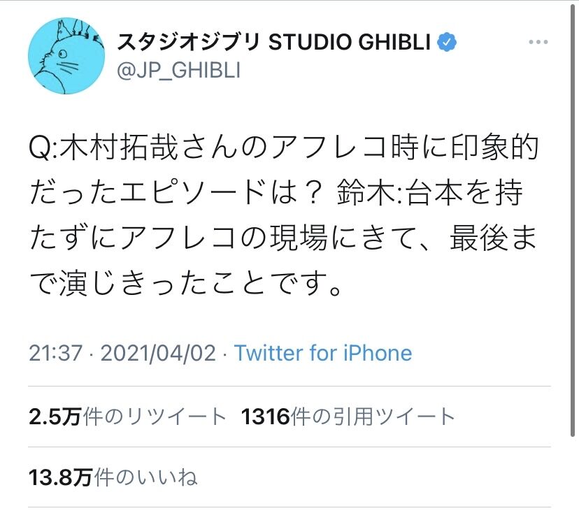 ジブリ「ハウルの木村拓哉は台本を持たずに現場に来て最後まで演じきったぞ。声優にできる?」
