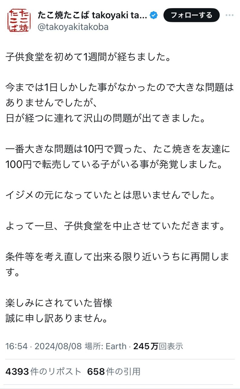 【悲報】子ども食堂、子ども転売ヤーが現れ中止に