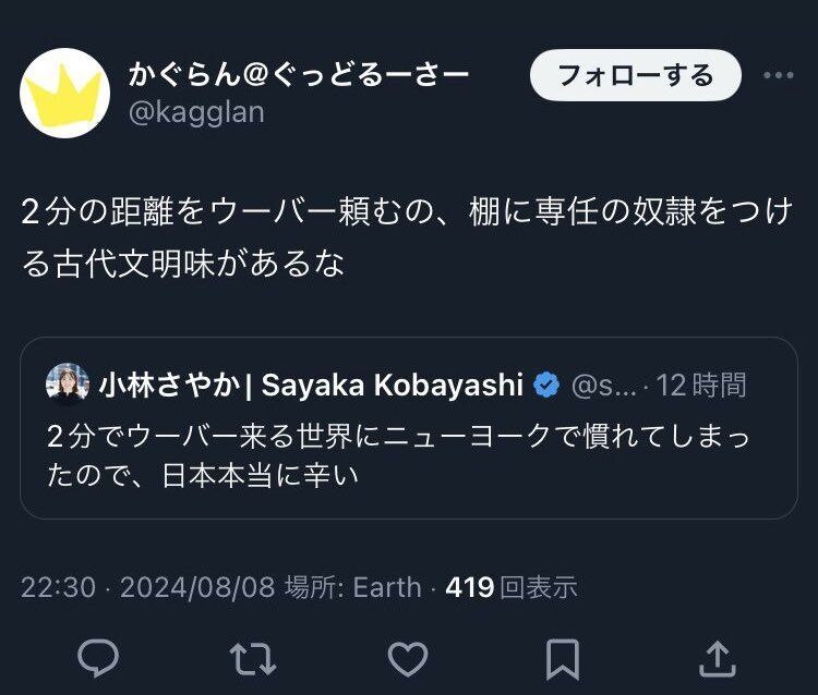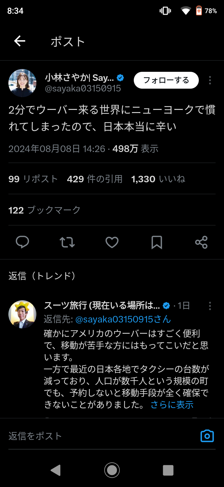 ワイはタクシーなんて頻繁に使えない貧乏人やから嫌味に聞こえる