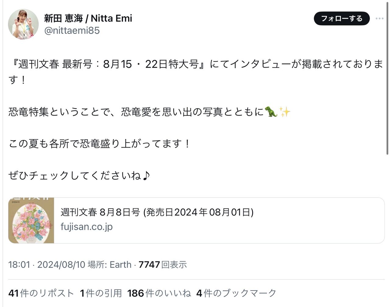 『週刊文春 最新号:8月15・22日特大号』にてインタビューが掲載されております!