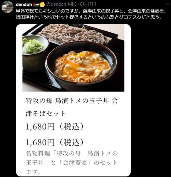 【悲報】靖国神社、とんでもないメニューで商売をしてしまい炎上