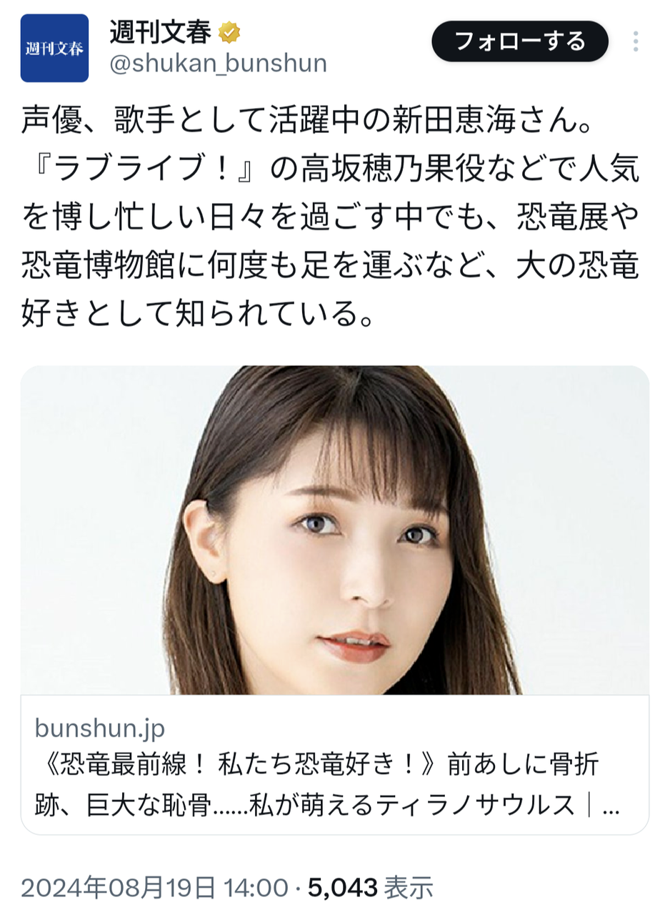【悲報】紅白出場声優の新田恵海さんに文春砲wwwwwwwwwww