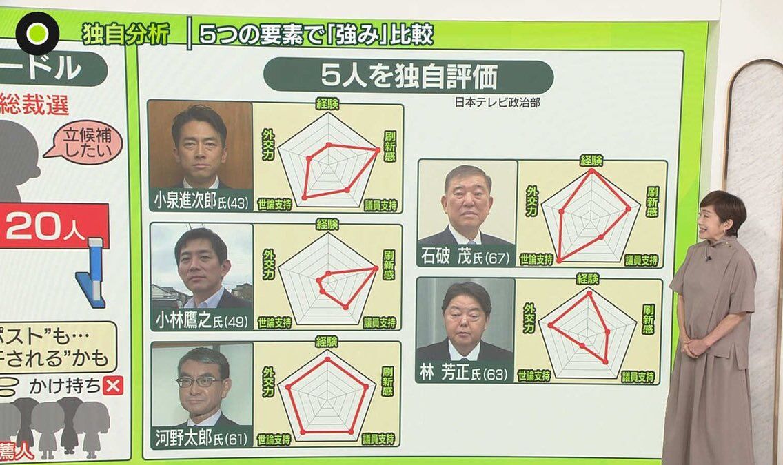 【画像】自民党総裁選、有力候補のステータスが開示されるwwwww
