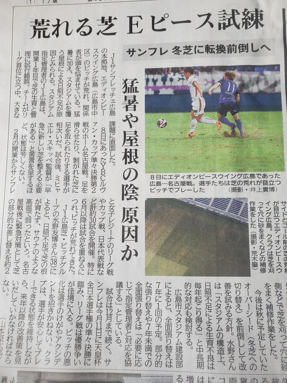 新サカスタ、荒れる芝 猛暑や屋根の日照妨げ影響か