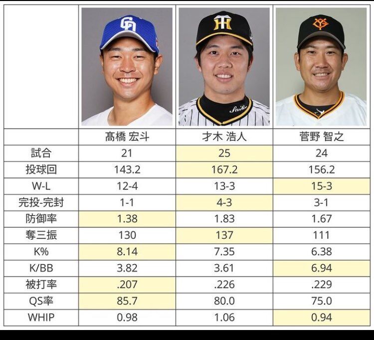 【画像】熾烈な沢村賞争い。なんG民は誰を選ぶ?