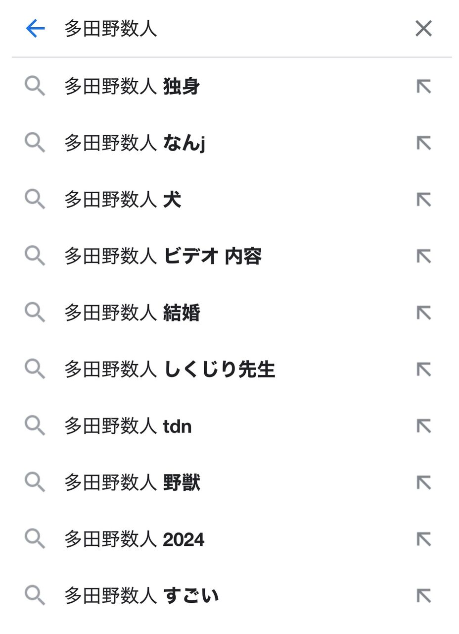 【画像】多田野数人さん、サジェストが浄化させる