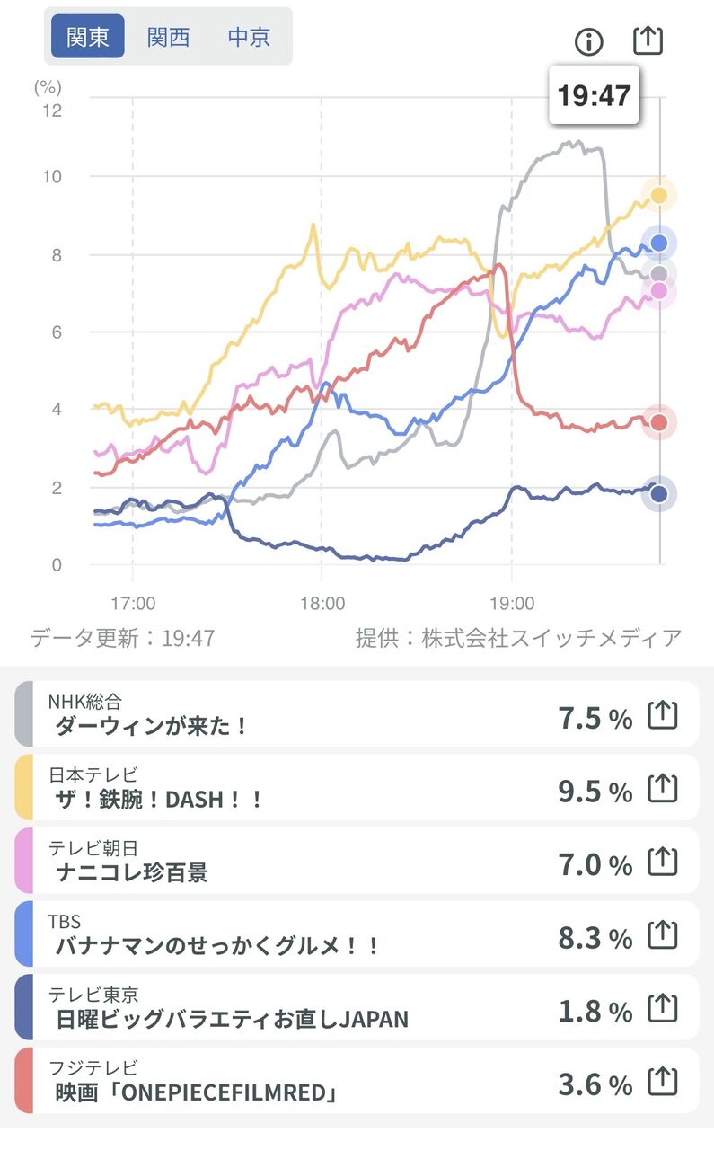 【朗報】地上波初放送の「ONE PIECE FILM RED」視聴率で国民的漫画としての威厳を見せつけるwwwww