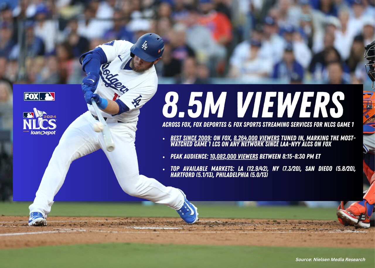 >米メディア「トーキン・ベースボール」もX(旧ツイッター)で「ナ・リーグ優勝決定シリーズ第1戦の視聴者数は848万人で、(過去)15年間のリーグ優勝決定シリーズ開幕戦で最多であり、2023年(378万人)よりも119%増加した」と伝えた。