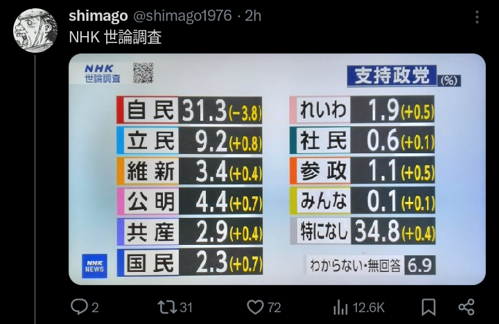 【悲報】NHK世論調査、自民圧勝wwwwwwwwww