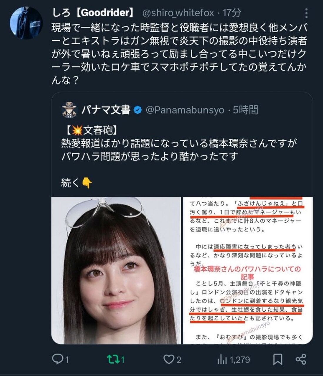 【悲報】橋本環奈さん、叩かれまくり