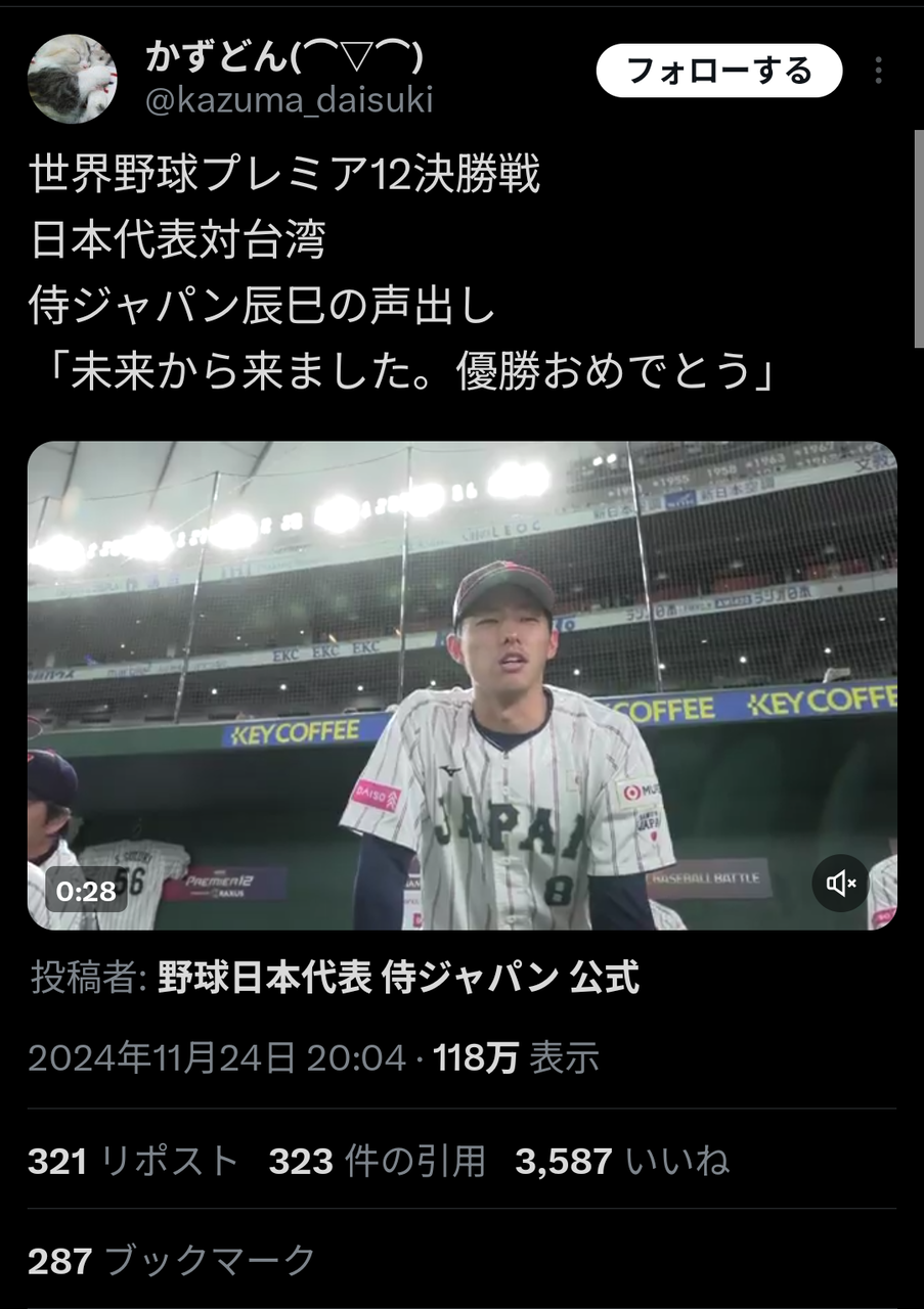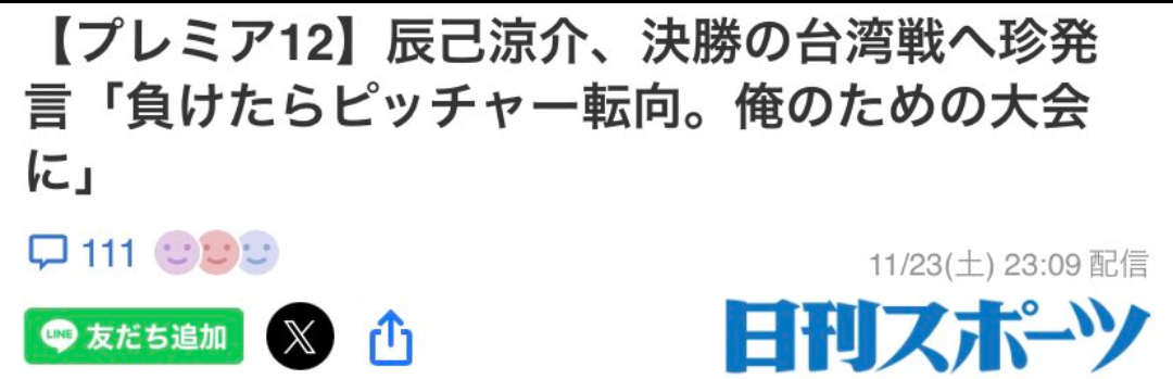 次のプレミアでは辰巳が先発して台湾を完封するという物語が出来るんやな