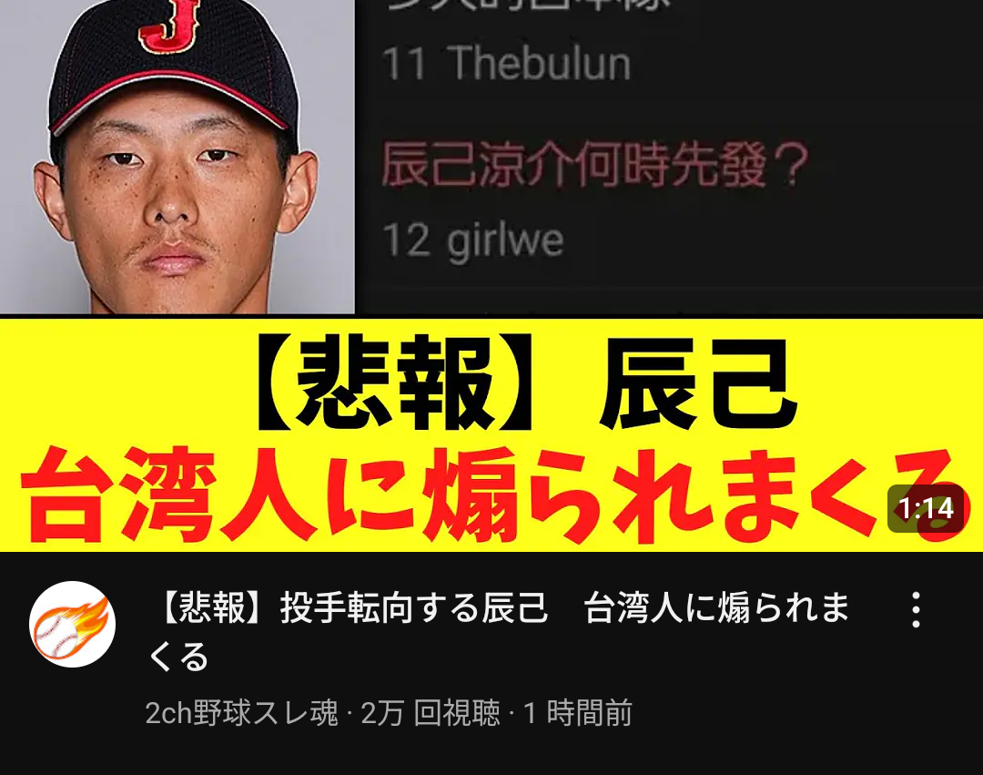 【悲報】台湾を侮辱しまくった辰己、台湾ネットで馬鹿にされる…
