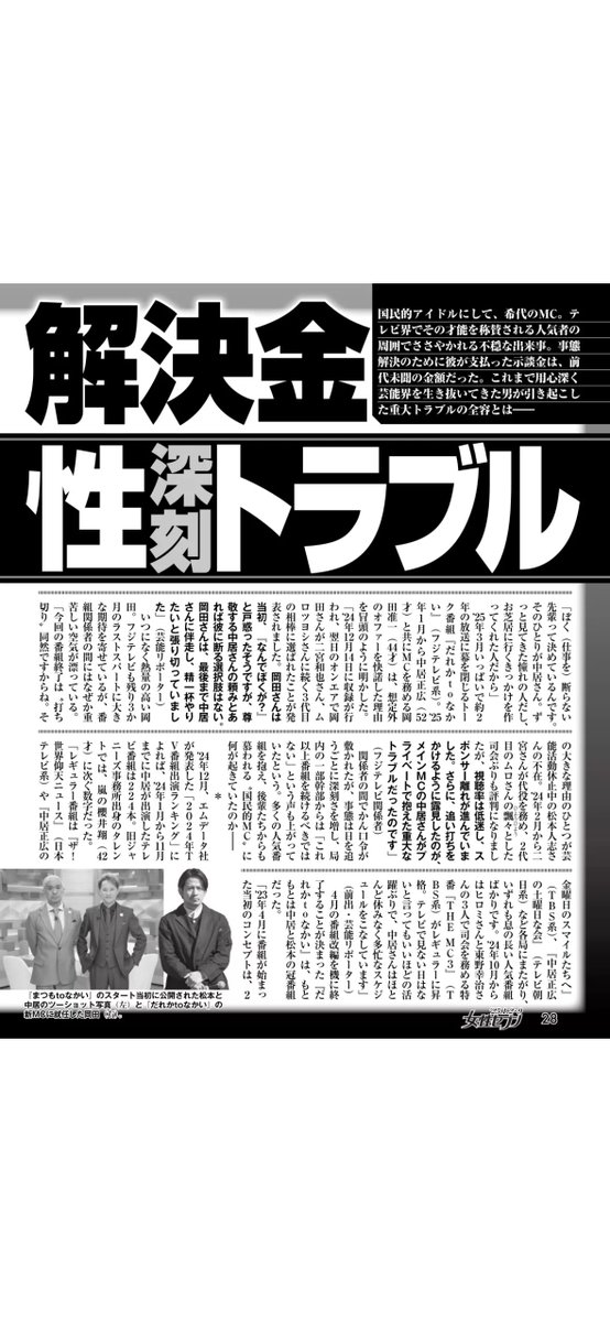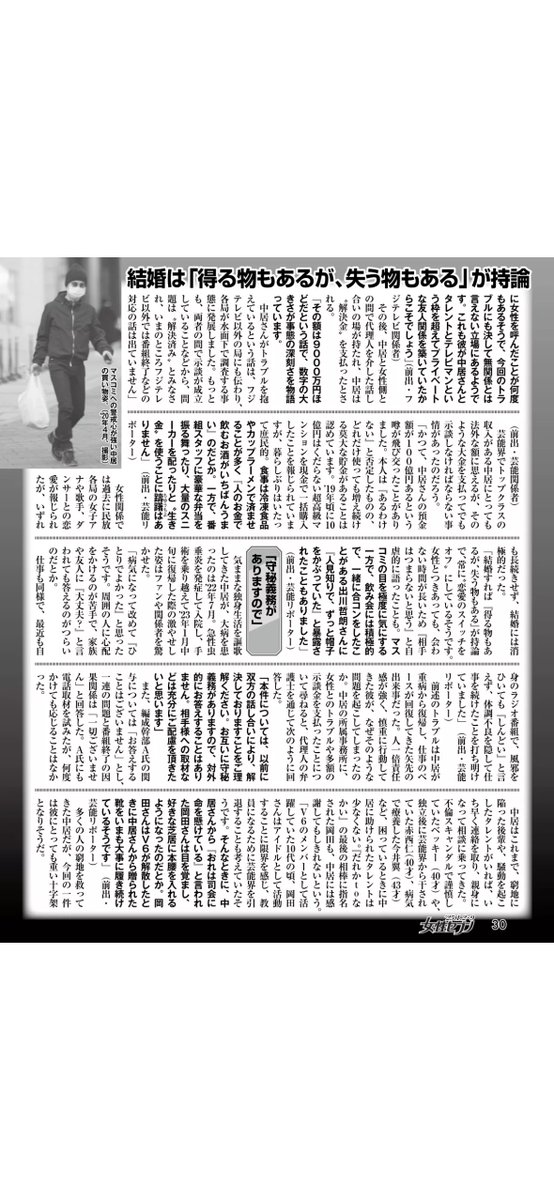【悲報】中居くん女性トラブル…